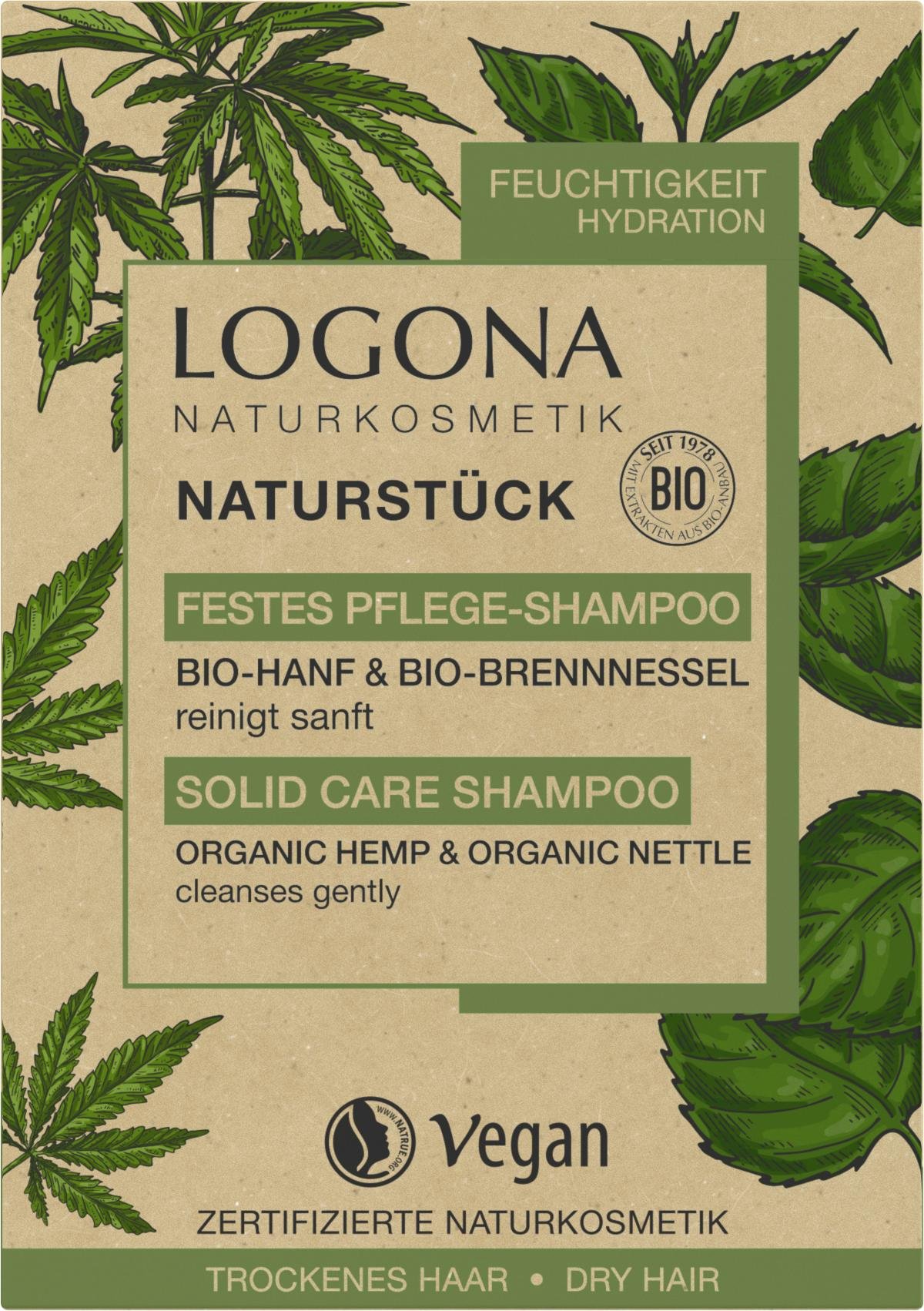 NACHHALTIG & ERGIEBIG: Das LOGONA FESTES PFLEGE-SHAMPOO ist für alle Haartypen geeignet. Die innovative Pflegeformel mit Bio-Hanf* & Bio-Brennnessel reinigt und bewahrt die Feuchtigkeit des Haares. Der ergiebige Schaum mit aromatischem Kräuterduft verwöhnt die Sinne. *enthält kein THC