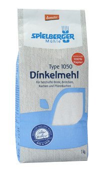 Für das Dinkelmehl 1050 wird bester demeter-Dinkel verwendet. In der Spielberger Mühle wird das Getreide in mehreren Schritten mit größter Sorgfalt und Fingerspitzengefühl zu diesem mittelhellen Mehl vermahlen, das noch viele wertvolle Bestandteile des Getreidekorns enthält. Es eignet sich besonders für herzhaftes Gebäck wie Brote, Brötchen, Kuchen und Pfannkuchen.