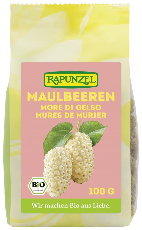 Die Früchte des Maulbeerbaums, deren Farbe von weiß bis rot reicht, ähneln in ihrer Form der Brombeere. Die weißen Maulbeeren von Rapunzel schmecken herrlich aromatisch-süß und fein-karamellig nach Honig.