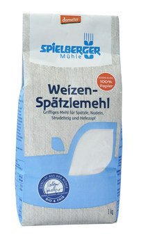 Griffiges Spezialmehl für die Herstellung von Spätzle, Schupfnudeln, Knöpfle und Nudeln aus Weizen. Außerdem kann es sehr gut für Strudelteig und lockeren Hefeteig verwendet werden; Die optimale Vermahlung sorgt für einen elastischen Teig, der nicht zerreißt und sich gut verarbeiten lässt. Ergibt typische Spätzle mit perfektem Biss und seidiger Konsistenz.