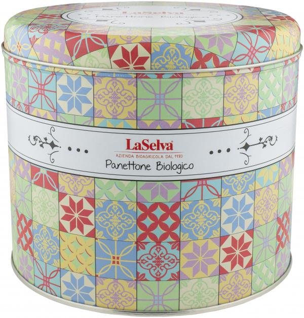 Wir servieren Ihnen unseren Bio-Panettone in der attraktiven Metallbox zum Wiederverwenden für Selbstgebackenes und zum Verschenken.